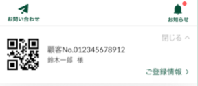 ご登録情報の「閉じる」をタップすると個人情報を閉じた状態にすることができます。