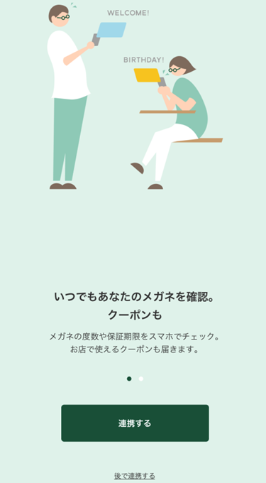 ※初回表示の時のみ「メガネを追加」についての説明が表示されます。