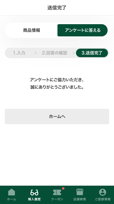 購入履歴詳細ページの「アンケートに答える」をタップするとアンケート回答ページが表示されます。